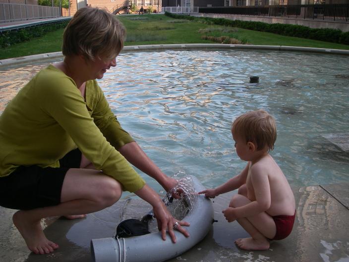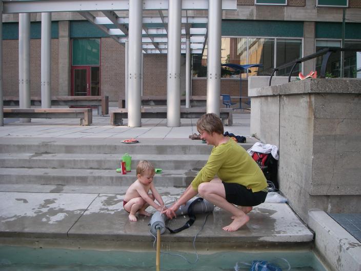 Today Christina and I played in one of Toronto's other very nice urban beach spaces: the fountain behind the chemistry building:
