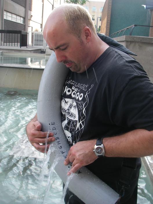 Today, the famous architects Kim Storey and James Brown came to discuss hydraulophone installations; Brown and Storey are the creative geniuses (together with Dan Euser) who created Canada's cultural and civic epicentre, Dundas Square: