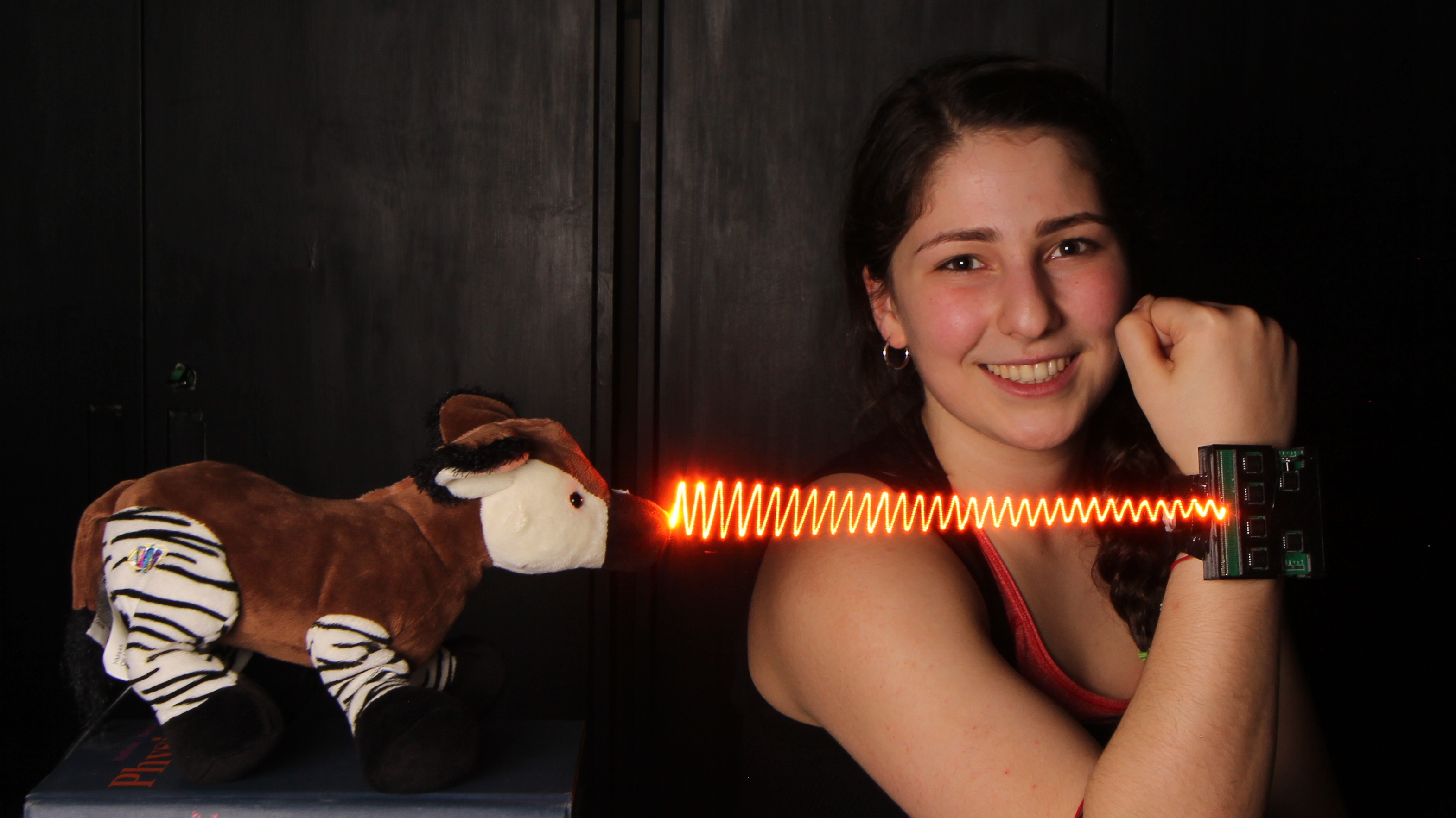 Microphone hidden inside a stuffed toy Okapi: actual measurement and visualization of sound waves it is capable of hearing.